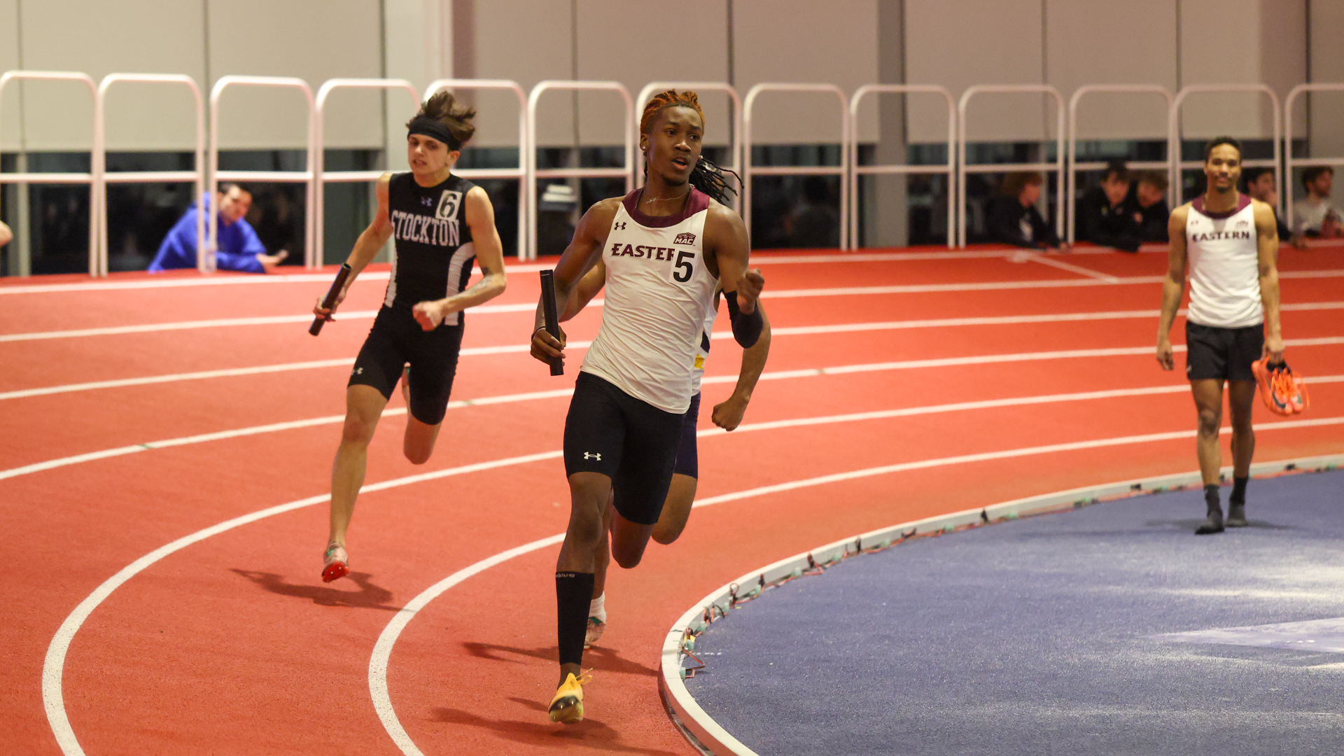 First year throwers Derrick Swain and Christian Marrero will each likely need to PR to get on the podium in the Shot Put, but they are in the event. Eastern has never scored a point inside in a throwing event, and Swain and Marrero are just the second and third individuals to throw shot at a MAC Championship for Eastern. Four Eastern throwers will compete in the Weight Throw. Foday Koroma and Nick Bensavage have each broken the program record with PR's this year, and will look to add to that number as they compete against a deep field in that event.